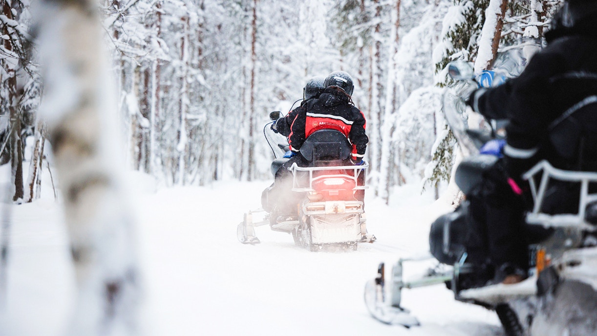 Tres iconos del Ártico en una sola aventura: motos de nieve, huskies y renos en un solo día.