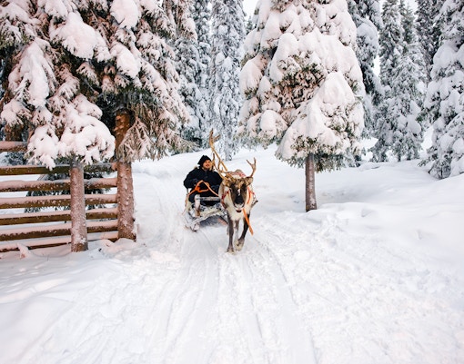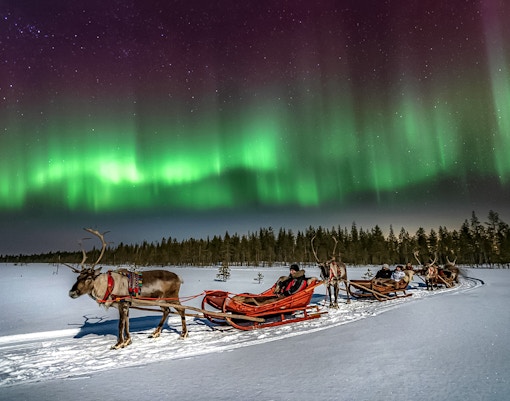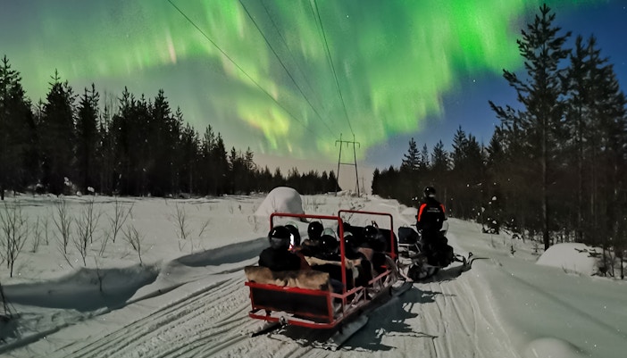 Trails are draped in sparkling snow, with lights from Santa Claus Village and holiday decorations creating a whimsical atmosphere that you won’t find any other time of year. You’ll often ride past festive farm settings, where reindeer are adorned with traditional decorations and huskies wear tiny bells, adding a joyful, holiday soundtrack to the adventure. Guides will share local Lappish legends, Christmas-themed stories, and insights into Sámi holiday traditions.